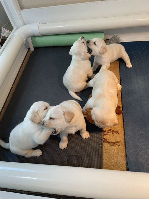****************** *********************************** Hilde's puppies arrived on October 5th, 2021 Hilde was bred with CH Inselheim McLean. *********************************** FEMALES AVAILABLE Families interested in a Twildo Meadow puppy should contact us to voice an interest in being placed on a list to receive one of our awesome Labradors. It is preferable that Families interested in a lab puppy from a Twildo Meadow litter would have a fenced yard for the puppy to play in, however alternative arrangements for providing a safe environment for the puppy may be acceptable. Families should be planning on keeping the puppy indoors as a member of the family. Families will be carefully interviewed to insure that the puppy is being placed in a safe, loving environment. ****************************************** TWO GIRLS STILL AVAILABLE |