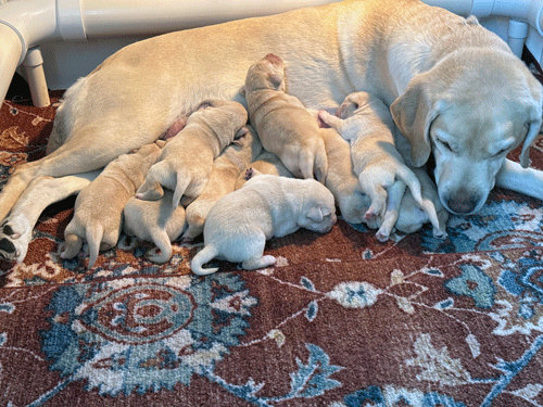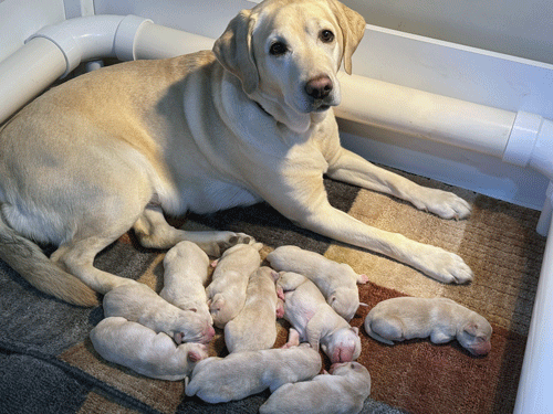 ****************** Puppies Whelped March 7, 2025 *********************************** LUNA delivered her litter of puppies on March 7, 2025. Luna's litter was sired by Marz from Mother Pupper Labradors. Marz can be seen below and at www.motherpupperlabs.com. Photo collage courtesy of Mother Pupper Labradors