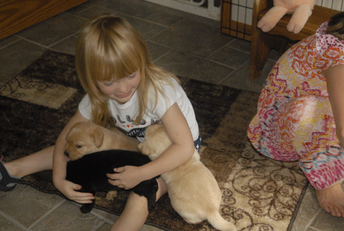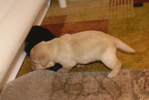 ****************** JETTA'S PUPPIES ARRIVED July 12, 2015 Jetta delivered her litter of puppies on July 12, 2015. Jetta's litter was sired by Ch Mar-Jo's Rifleman WC "Lucas" at Mar-Jo Labradors. Lucas can be seen at www.marjolabradors.com. Families interested in a Twildo Meadow litter should contact us now to voice an interest in being placed on a list to receive one of our awesome Labradors. *********************************** It is preferable that Families interested in a lab puppy from a Twildo Meadow litter would have a fenced yard for the puppy to play in, however alternative arrangements for providing a safe environment for the puppy may be acceptable. Families should be planning on keeping the puppy indoors as a member of the family. Families will be carefully interviewed to insure that the puppy is being placed in a safe, loving environment. ************************** 8-5-15 8-21-15