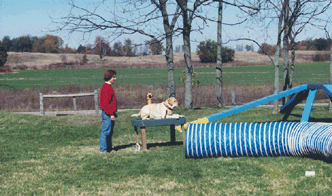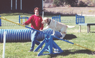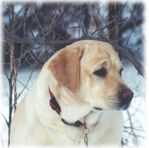 SUNSET SADIE VI, CGC, TT, TDI WHELPED 8-10-00 HIPS, ELBOWS & HEART OFA CERTIFIED, EYES CERTIFIED ANNUALLY Sadie enjoys going to obedience classes. She started at 8 weeks old with "Puppy Head Start". She went on to "Basic Obedience" training, earning her C.G.C. in September of 2001. She also has completed "Intermediate Obedience", building on all the basics and learning hand signals. Sadie finished "Advanced Obedience" training in the fall of 2002, working on off lead control. In September 2002 she was tested by the American Temperament Test Society, earning her T.T. Title. In November 2004 Sadie earned her TDI title. She loves field work as well as the agility course. We are continuing to train in Obedience and Agility, with the hope to someday compete either in Obedience or Agility trials. |